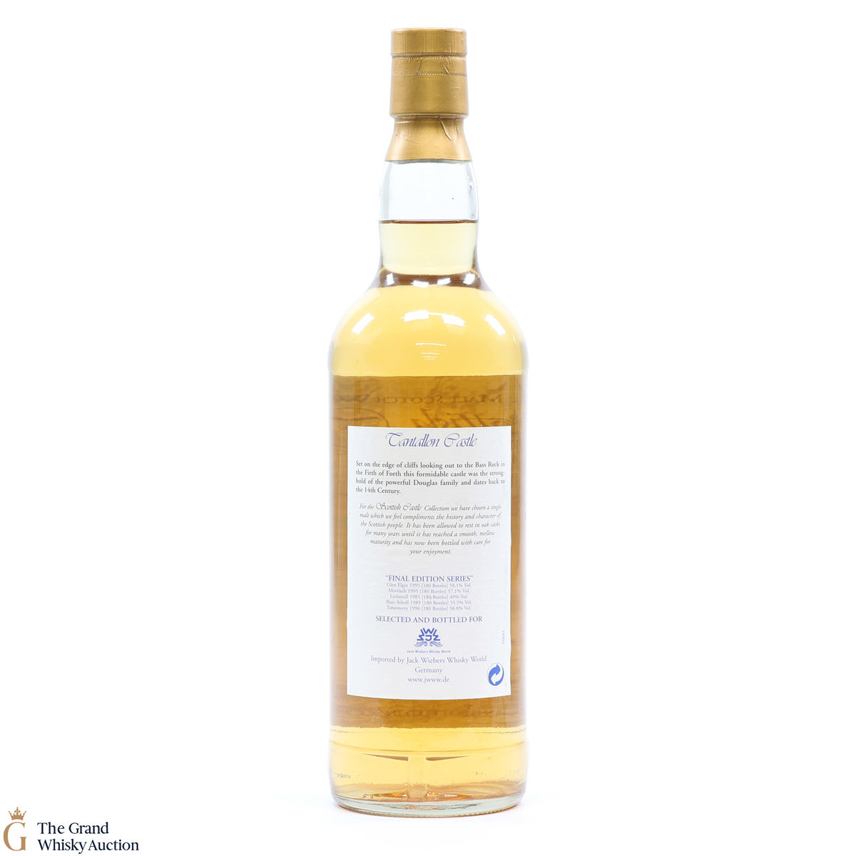 Due to the various ages of bottles and their seals, the condition of liquid is at the buyer's discretion and no claim can be lodged against failure/leakage in transit. Loss and breakage cover is available at 3% of the hammer price as standard. If the lot is not insured, no claim can be lodged against the courier or The Grand Whisky Auction for breakage or loss in transit.