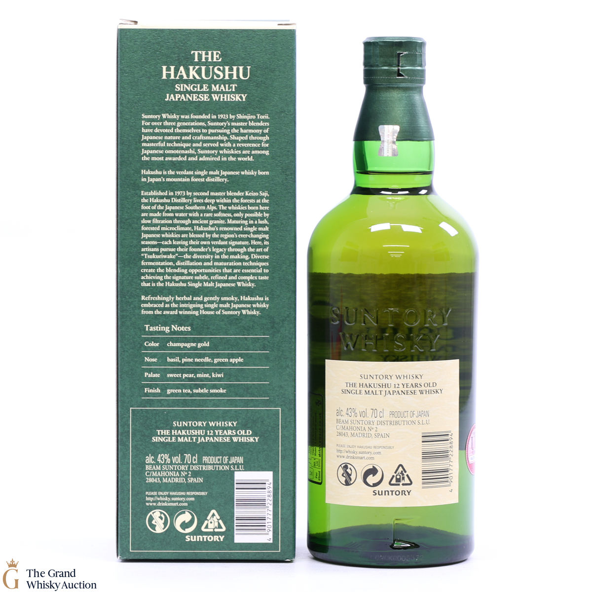 This is a 12 Year Old expression from the Hakushu distillery, which lies in the foothills of Mount Kaikomagatake.