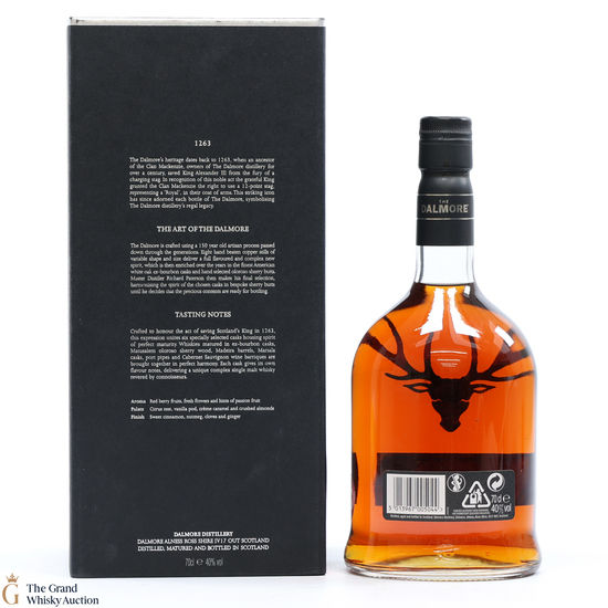 To make The Dalmore King Alexander III, Master Distiller Richard Paterson specially selected 6 casks of differently aged Dalmore malts matured in wine, Madeira, sherry, marsala, Kentucky bourbon and port casks. A remarkable feat of blending crafted to honour the act of saving Scotland's King in 1263. It is a rich, fruity Highland single malt.