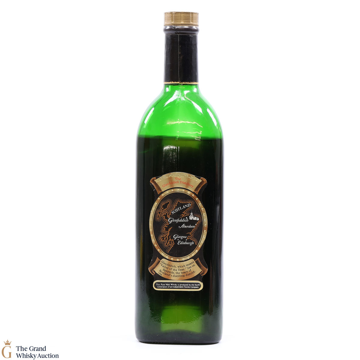 A now rare 26 2/3 FL.OZ bottling of 1970s Glenfiddich 8 Year Old Pure Malt.