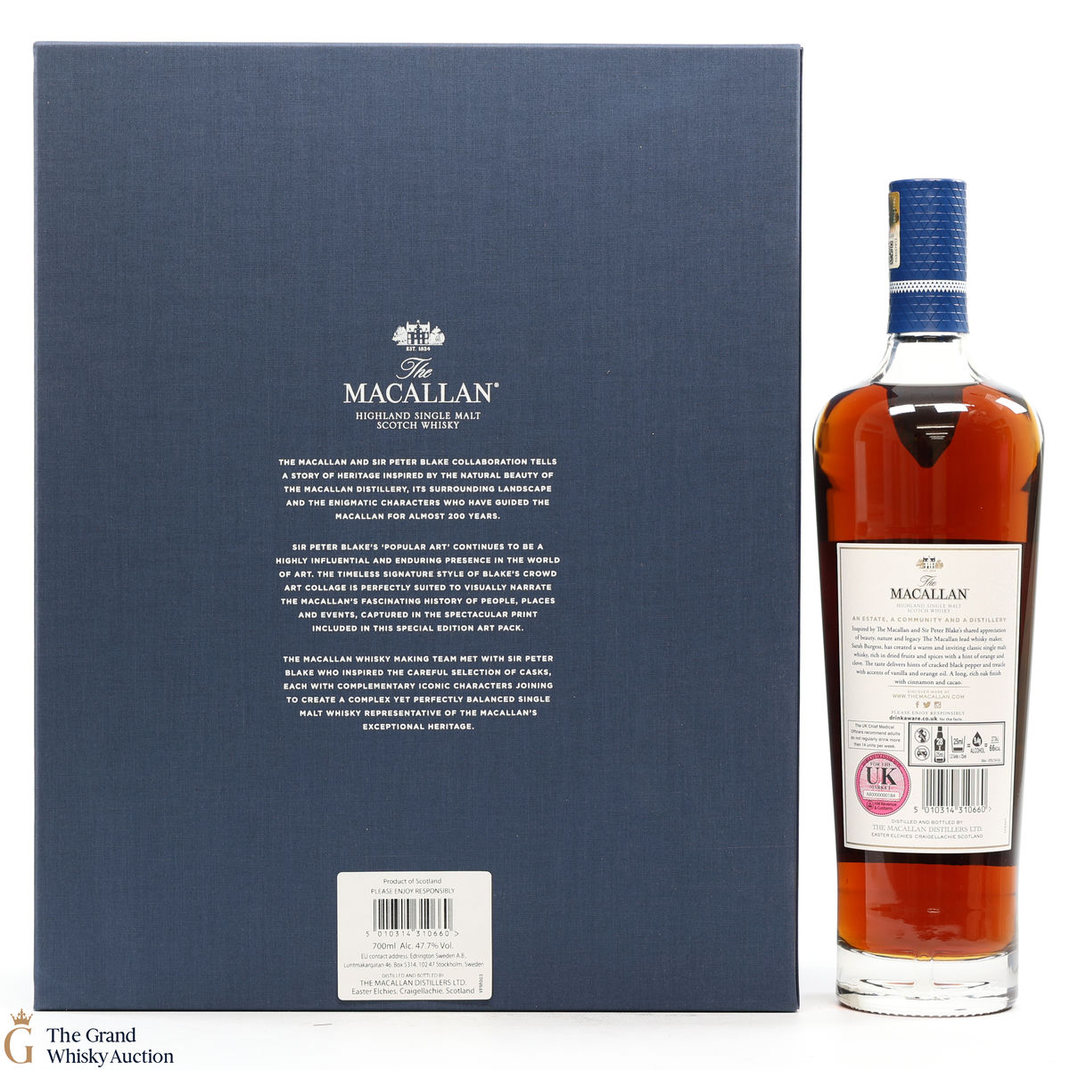 Part of The Anecdotes of Ages Collection, this is an extraordinary art and whisky collaboration with Sir Peter Blake. Being the third collaboration between the Macallan Distillery and Sir Peter Blake, this single malt was created to commemorate Sir Peter Blake's visit to The Macallan Estate. An Estate, a Community and a Distillery tells the story of some of the colourful characters from the distilleries past and present and features a label designed by Sir Peter Blake.