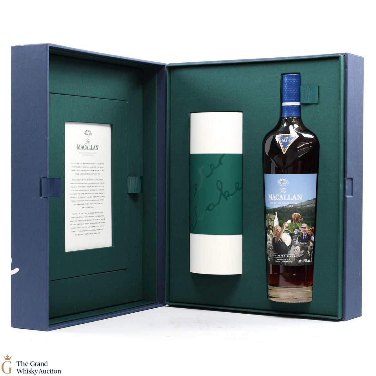 Along with this unique bottle of whisky is a scroll of artwork showing Sir Peter Blake's distinct style and a certificate detailing the history and heritage on which Sir Peter's art was based. There is also a piece of tracing paper which provides information on each character from The Macallan's history that Sir Peter chose to include in his art.