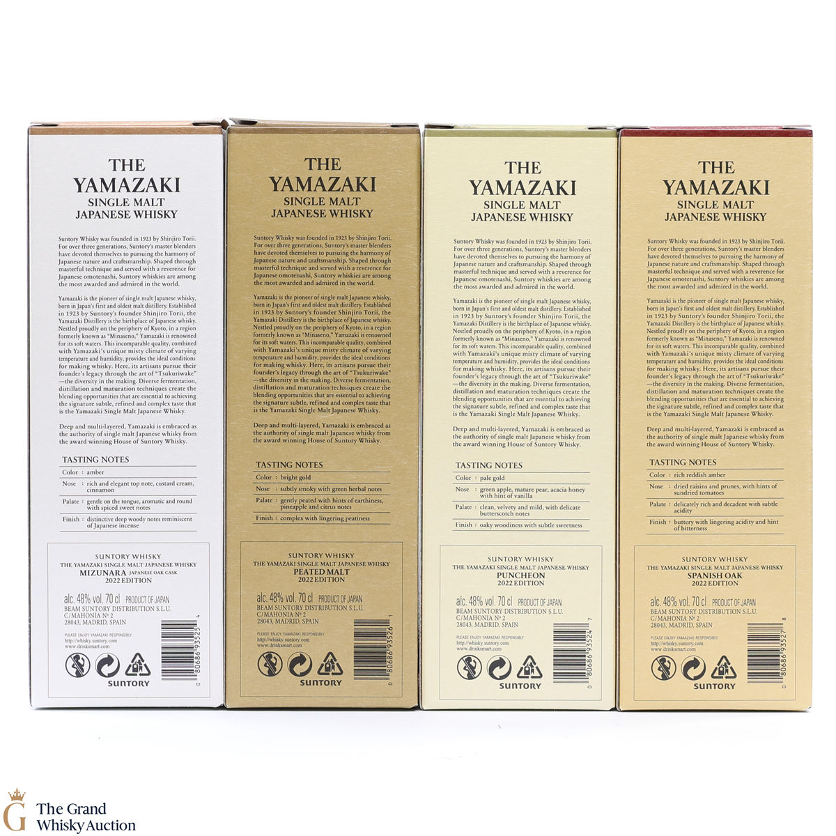 Yamazaki - Spanish Oak (2022): This Yamazaki Single Malt is one of the Yamazaki 2022 limited edition series editions. Matured in a Spanish oak cask, bottled as part of the Tsukuriwake selection. 70cl, 48%.