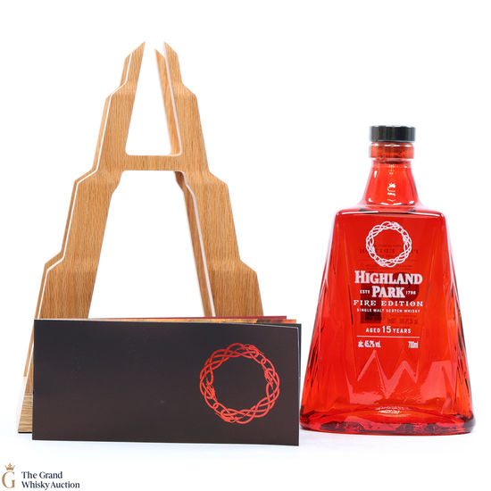 This stunning Highland Park 15 year old single malt follows the 'Ice' edition to complete this Highland Park two-part series. The 'Fire' edition celebrates Muspelheim, the glowing Norse fire realm of destruction. The malt was matured in refill Port casks and bottled at 45.2% abv. It's presented in a cradle shaped like a mountain.