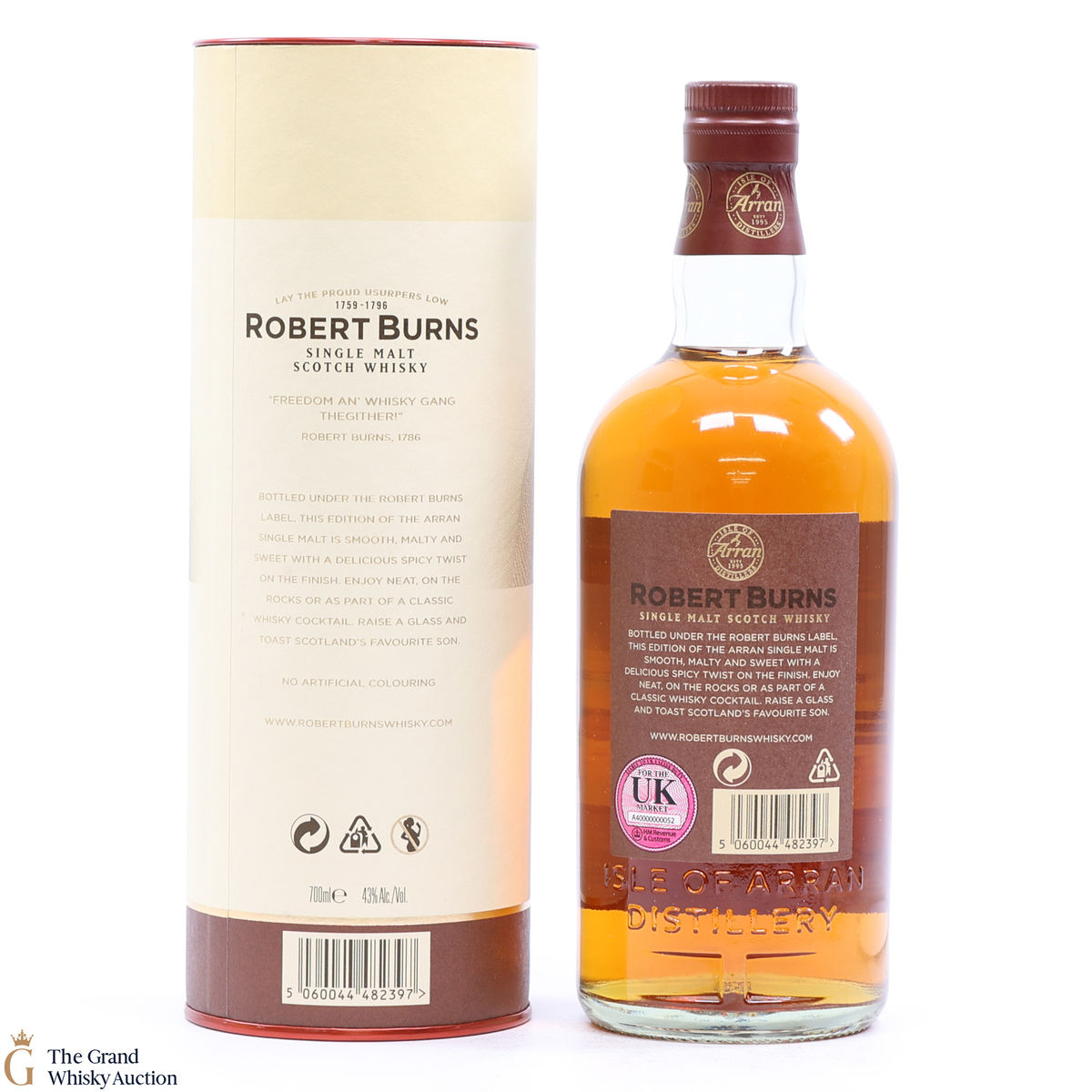 Bottled under the Robert Burns label this bottling of the Arran Single Malt is smooth, malty and sweet with a delicious spicy twist on the finish. "Raise a glass and toast Scotland favourite son."