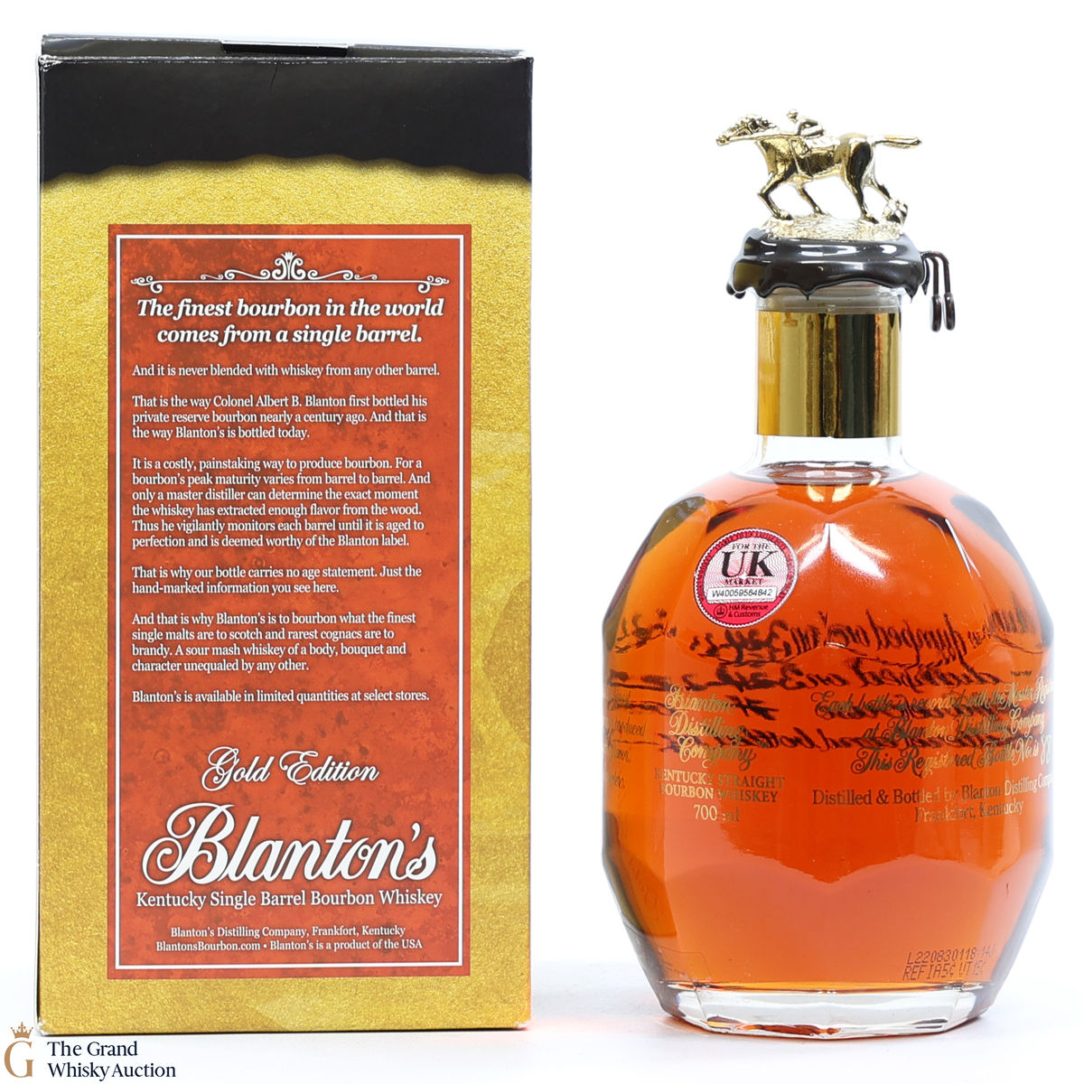 PLEASE NOTE: The wax seal on Blanton's bottles are prone to cracking in transit due to their design. Therefore, as stated in our T&C’s, we do not and will not accept liability should the seal be breached, broken, split or leak in transit. Additionally, please know due to the design of the internal cardboard packaging that surrounds the top of the bottles, it too may be torn. By bidding on this lot you have understood this to be true. Insurance is for complete breakage or loss in transit only.