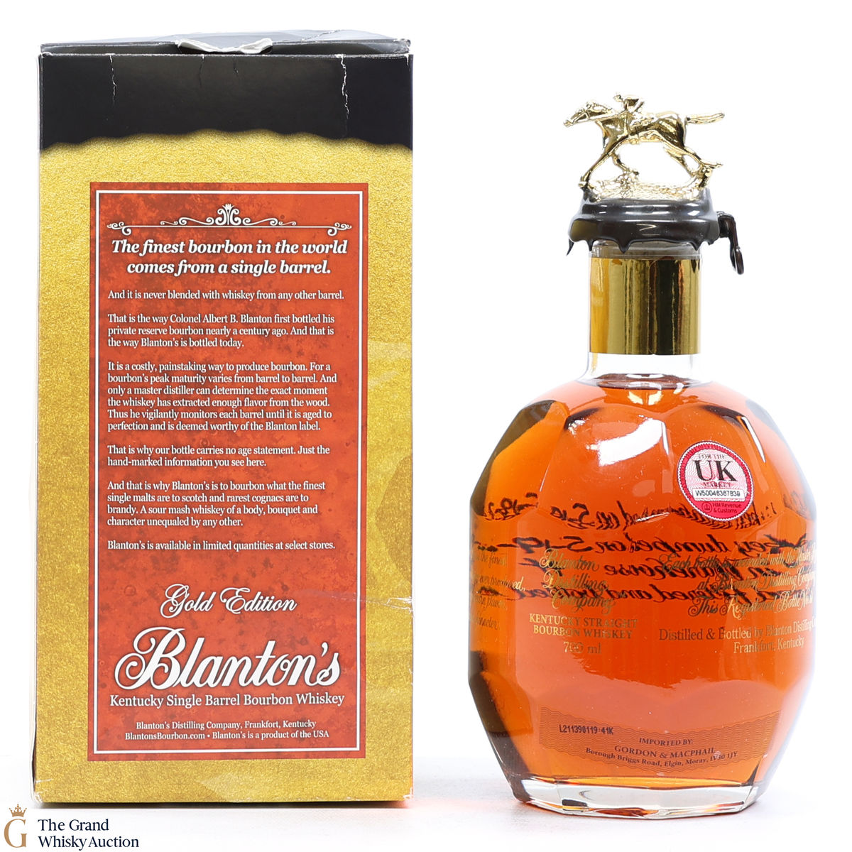 PLEASE NOTE: The wax seal on Blanton's bottles are prone to cracking in transit due to their design. Therefore, as stated in our T&C’s, we do not and will not accept liability should the seal be breached, broken, split or leak in transit. Additionally, please know due to the design of the internal cardboard packaging that surrounds the top of the bottles, it too may be torn. By bidding on this lot you have understood this to be true. Insurance is for complete breakage or loss in transit only.