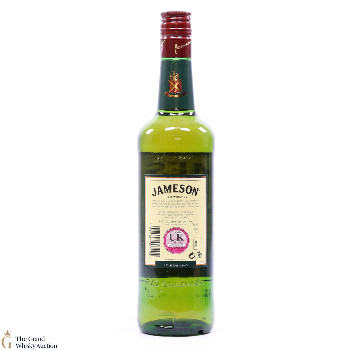A classic bottle of Jameson Irish whisky produced at the Midleton Distillery.