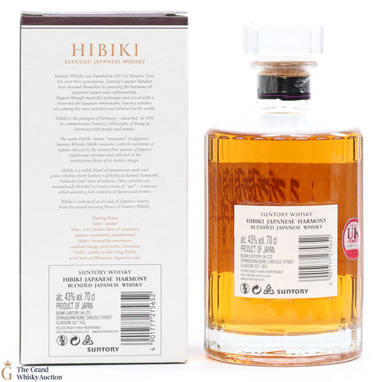 Hibiki Japanese Harmony is made with malt whiskies from the Yamazaki and Hakushu distilleries, as well as grain whisky from the Chita distillery. The whiskies are drawn from 5 different types of cask, including American white oak casks, Sherry casks and Mizunara oak casks. The blend itself was crafted by the Suntory Whisky blending team, led by Master Blender Shingo Torii. An elegant expression, with wafts of honey, orange, a herbaceous touch or two and light oak