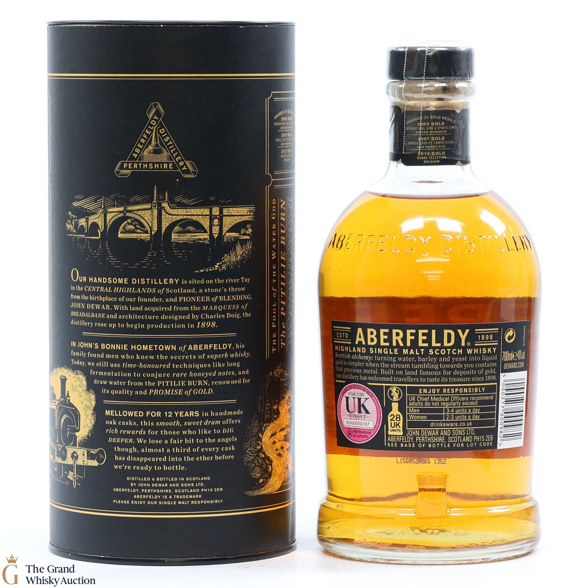 Due to the various ages of bottles and their seals, the condition of liquid is at the buyer's discretion and no claim can be lodged against failure/leakage in transit. Loss and breakage cover is available at 3% of the hammer price as standard. If the lot is not insured, no claim can be lodged against the courier or The Grand Whisky Auction for breakage or loss in transit.