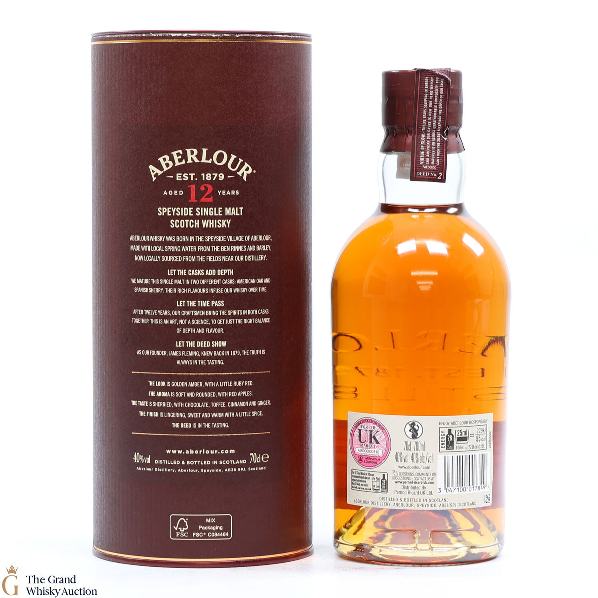 This Aberlour 12 Year Old, has been double cask matured in two handmade oak cask types. The double maturation both traditional oak and sherry casks adds depth of character to this single malt, now bottled at 40% abv.