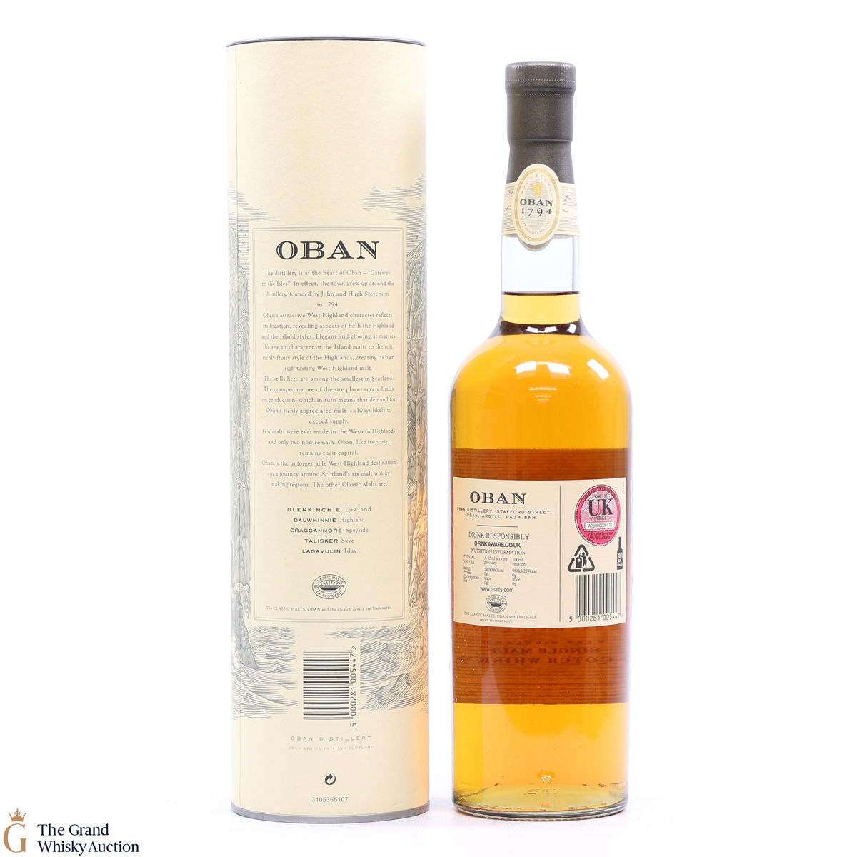 This is the Western Highland representative in Diageo's 'Classic Malt' series. Oban 14 year old single malt is a rich and fruity malt, with notes of heather and smoke. It an award-winning single malt, distilled close to the sea.