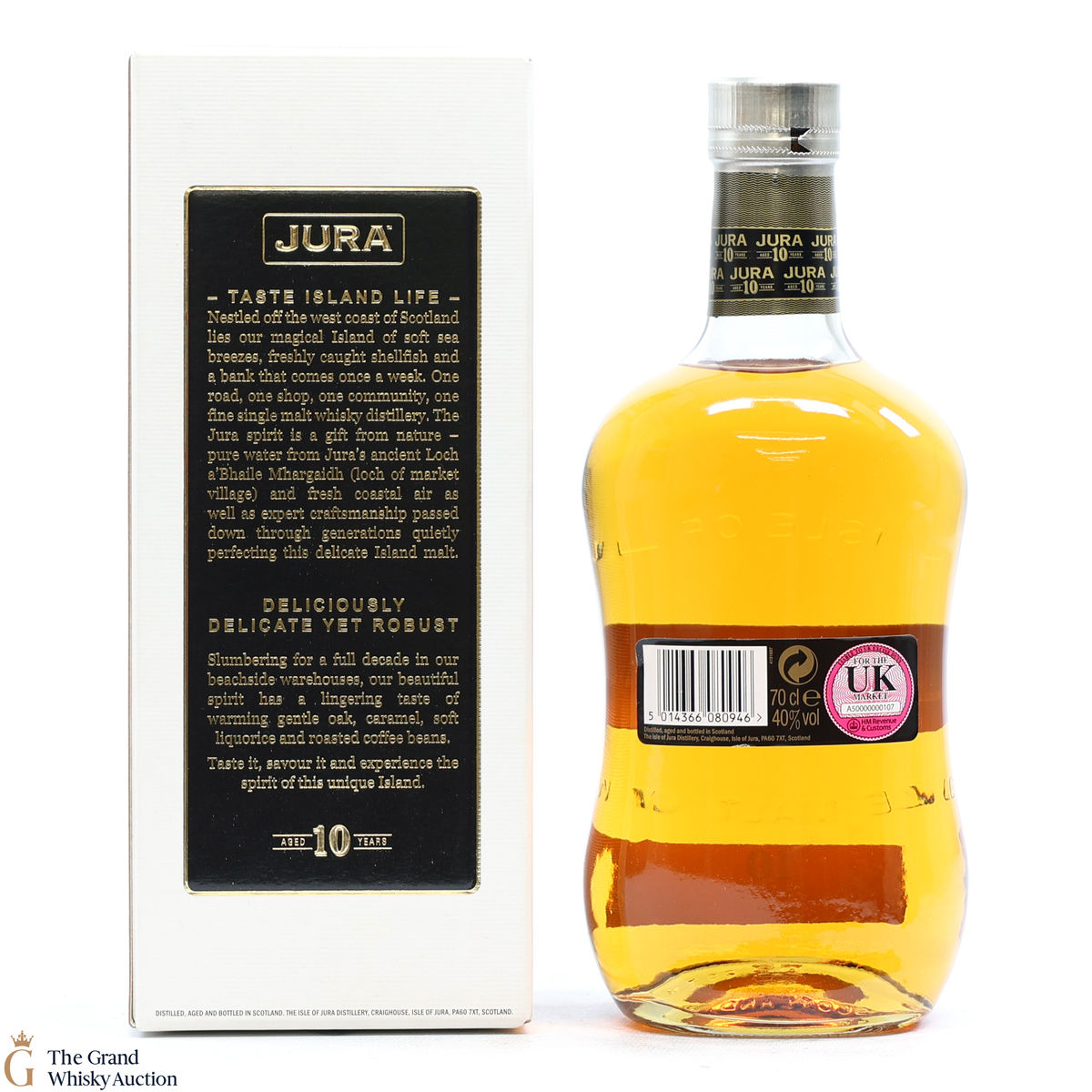 A bottle of Jura 10 Year Old. Originally built in 1810, the distillery fell into disrepair and wasn't revived until the 1960's by two local estate owners.