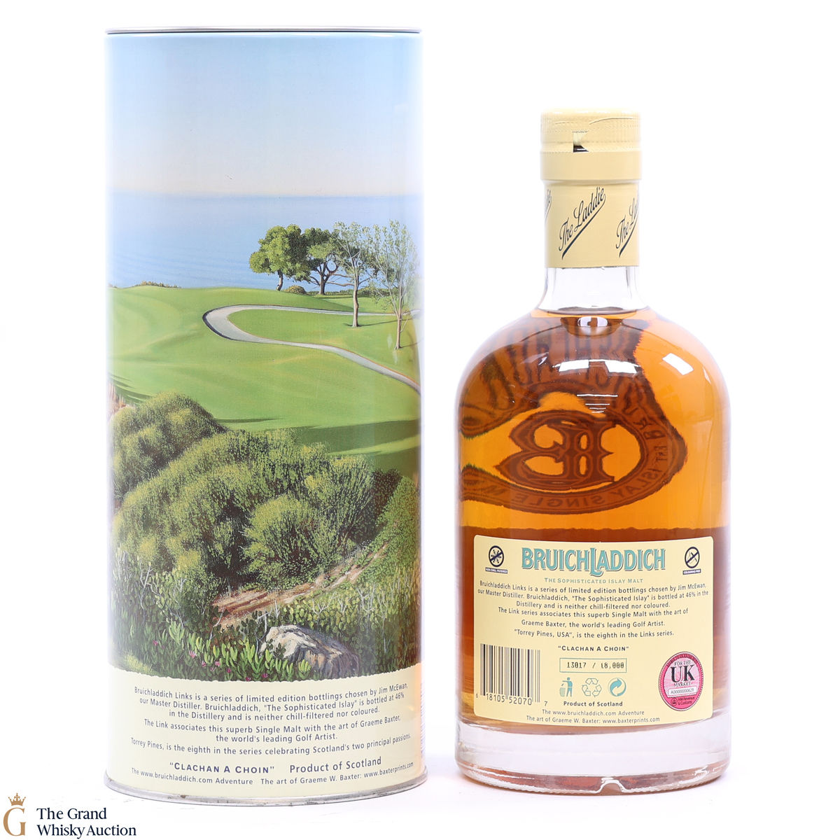 This 15-year-old single malt was the eighth release in Bruichladdich Links series and depicts Torrey Pines, USA. This single malt was finished in Chateau Latour casks.