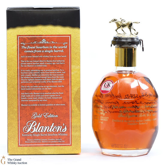 PLEASE NOTE: The wax seal on Blanton's bottles are prone to cracking in transit due to their design. Therefore, as stated in our T&C’s, we do not and will not accept liability should the seal be breached, broken, split or leak in transit. Additionally, please know due to the design of the internal cardboard packaging that surrounds the top of the bottles, it too may be torn. By bidding on this lot you have understood this to be true. Insurance is for complete breakage or loss in transit only.