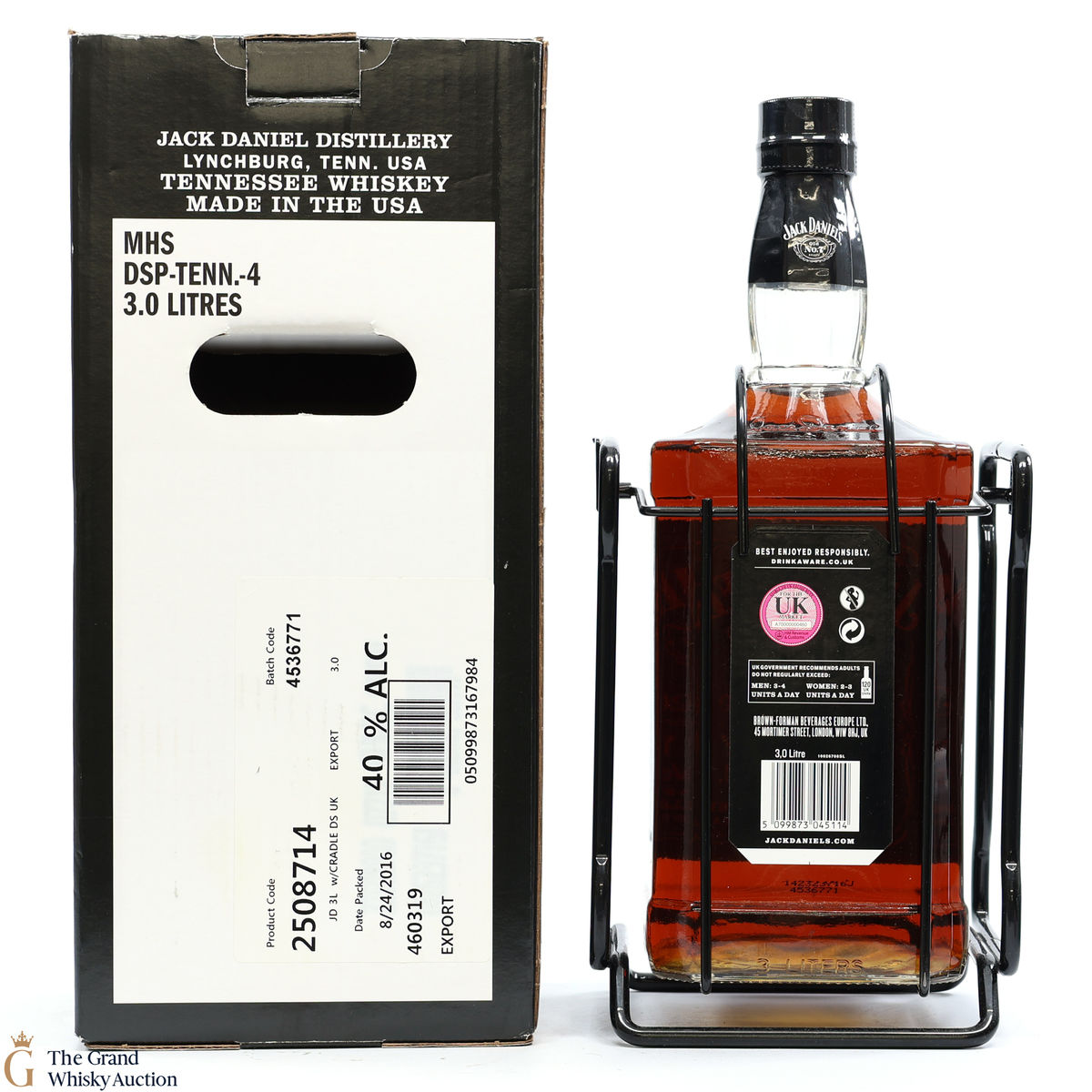 This is a bottling of Jack Daniel's Old No.7 brand. It is a 3L bottling alongside a cradle for the bottle.