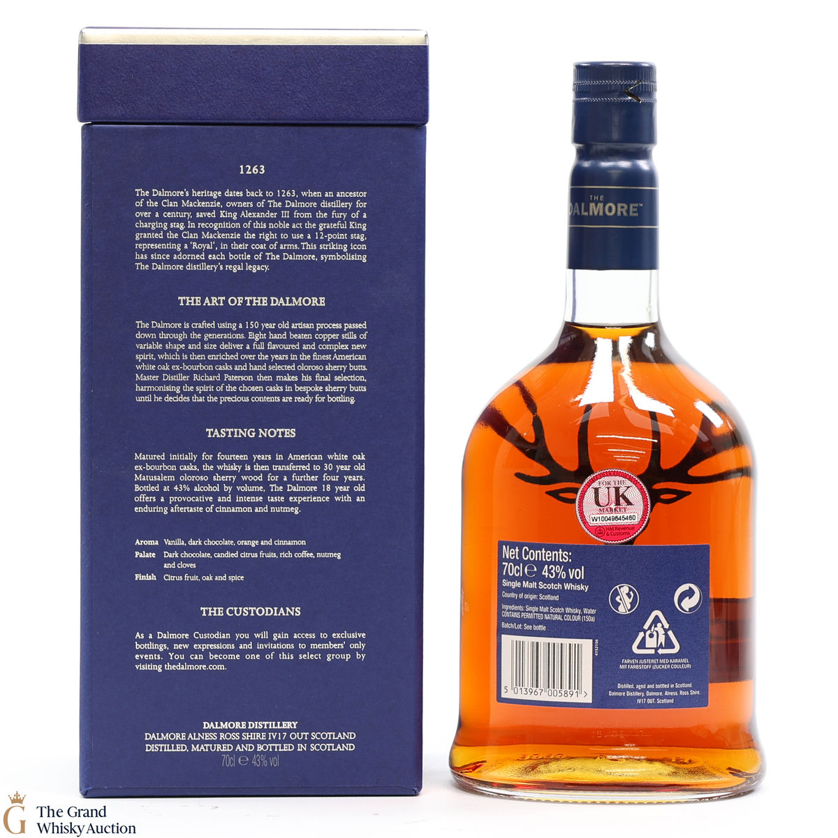 Dalmore’s trademark style is luscious notes of orange, chocolate and spices, and the 18 Year Old bottling is a terrific example. Aged in both bourbon and sherry casks, it has seductive notes of vanilla, dark chocolate and candied orange on the nose, followed by a full-bodied, spicy palate of cinnamon and stewed fruit.