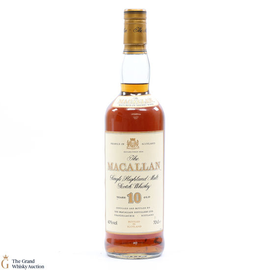 This is an old-style presentation of Macallan 10 Year old was bottled in the 1990's. This classic Speyside malt whisky matured in sherry oak casks from Jerez. Very collectable.