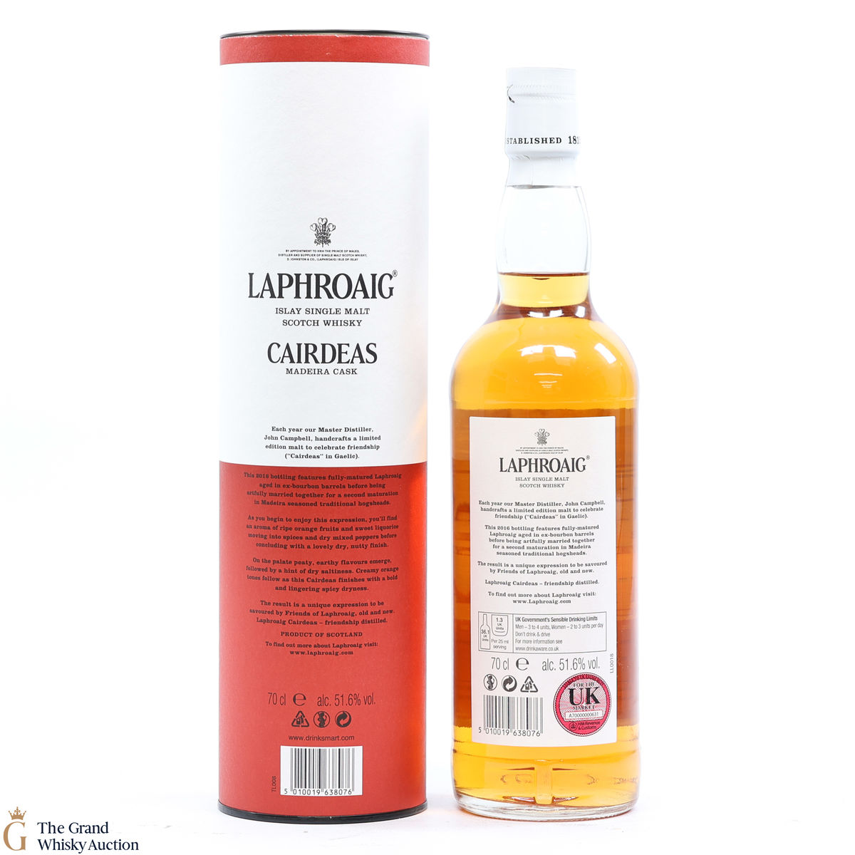 Cairdeas, Gaelic for 'friendship', is an annual bottle release by Laphroaig for their Friends of Laphroaig members. This bottling was originally aged in ex-bourbon barrels before being re-casked in Madeira seasoned traditional hogsheads. It was bottled at 51.6% ABV.