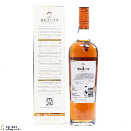 The Macallan 1824 Series celebrates natural colour. The most distinctive and defining characteristic of Macallan is the sherry-seasoned oak casks that are used to mature the whisky. This series shows commitment to 100% natural colour, drawn from wood. The colour of each expression becomes deeper as the range progresses.