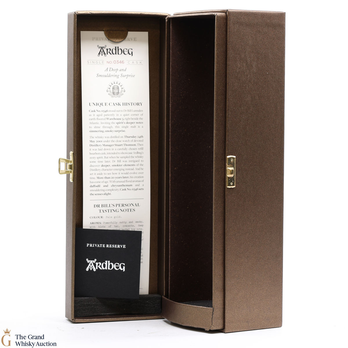 This private cask was distilled on the 24th May 2001 and matured under the careful guidance of Stuart Thompson who was Ardbegs manager at the time. Cask 346 was matured in warehouse 3 right beside the atlantic and produced only 145 bottles of 20 YO Ardbeg. Bottled at 42% exclusively for Angel's Share.
