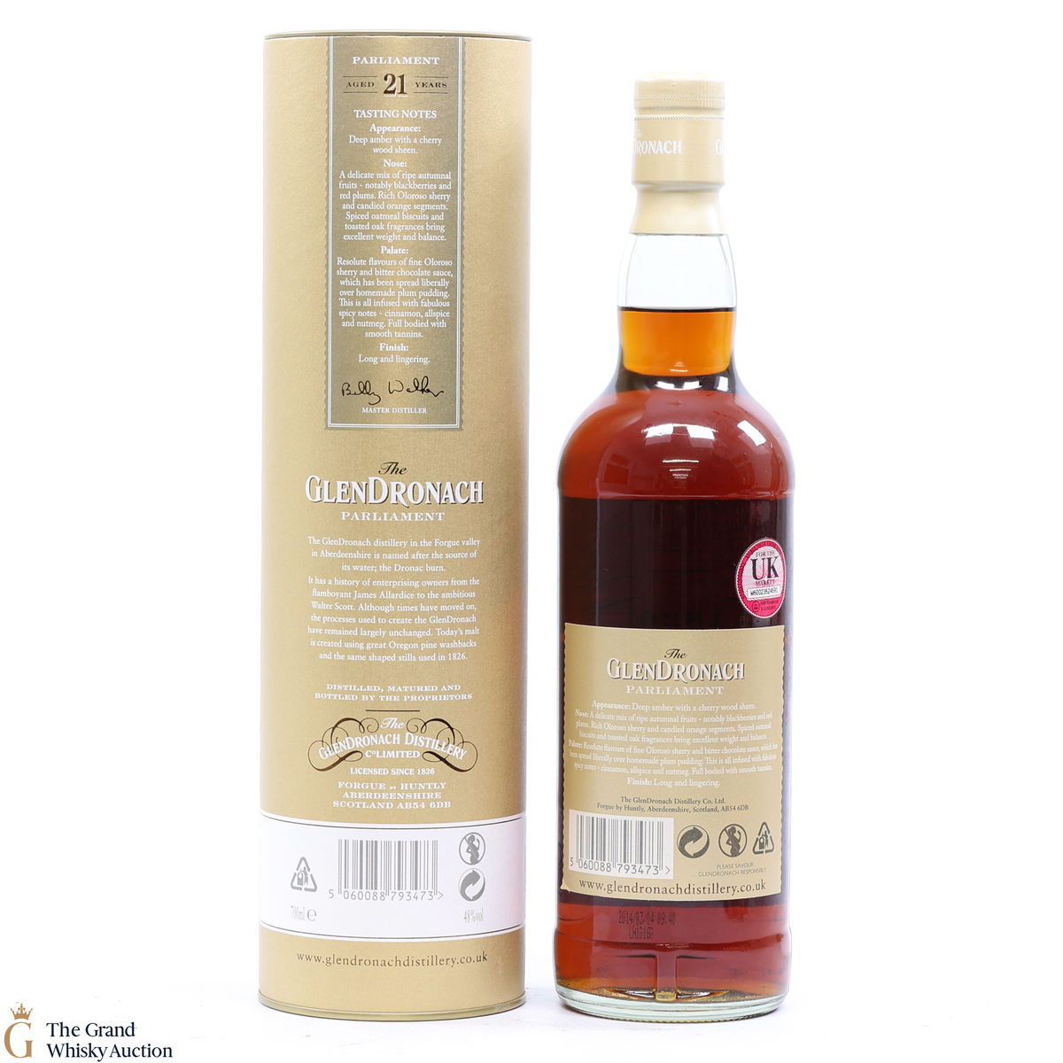 Due to the various ages of bottles and their seals, the condition of liquid is at the buyer's discretion and no claim can be lodged against failure/leakage in transit. Loss and breakage cover is available at 3% of the hammer price as standard. If the lot is not insured, no claim can be lodged against the courier or The Grand Whisky Auction for breakage or loss in transit.