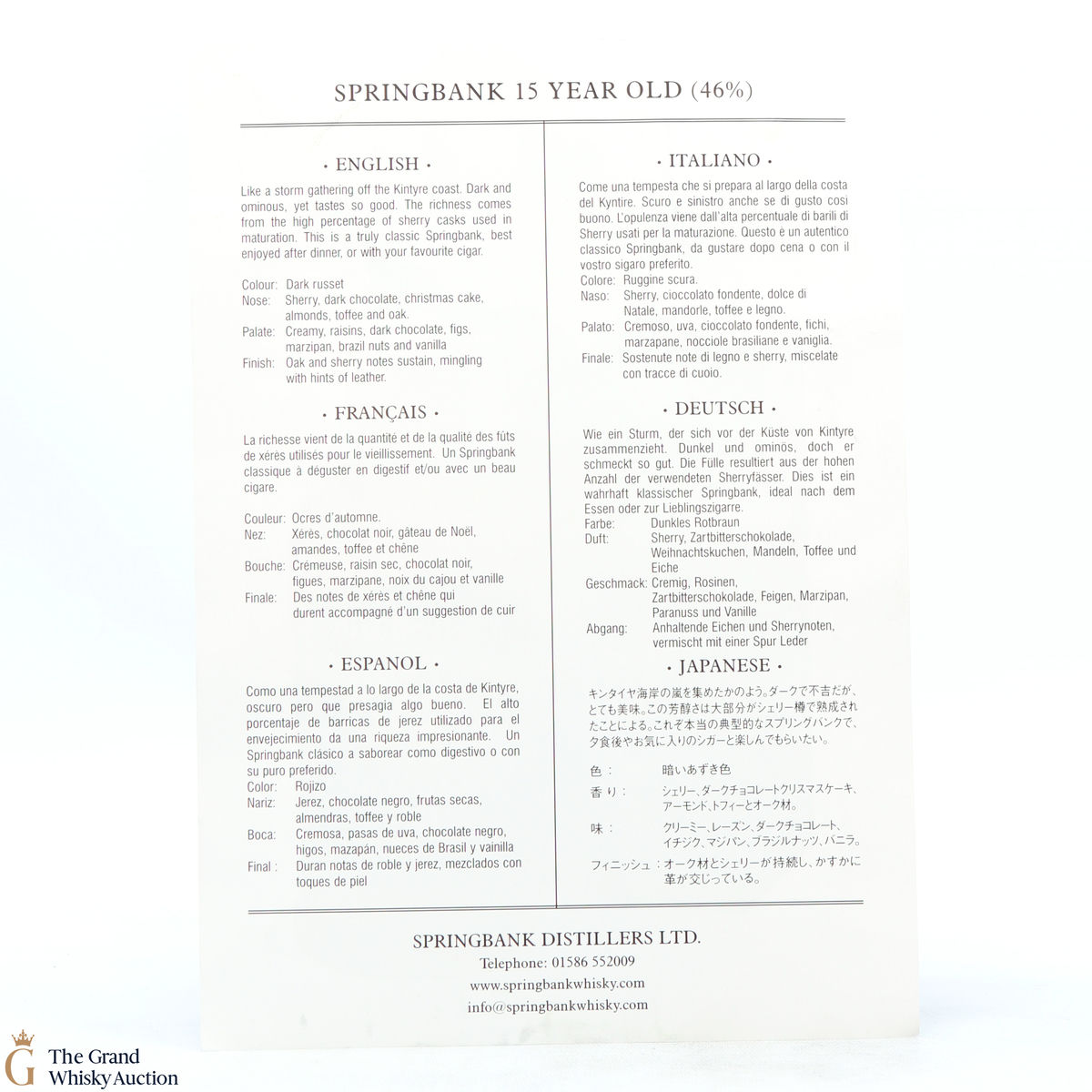 Due to the various ages of bottles and their seals, the condition of liquid is at the buyer's discretion and no claim can be lodged against failure/leakage in transit. Loss and breakage cover is available at 3% of the hammer price as standard. If the lot is not insured, no claim can be lodged against the courier or The Grand Whisky Auction for breakage or loss in transit.