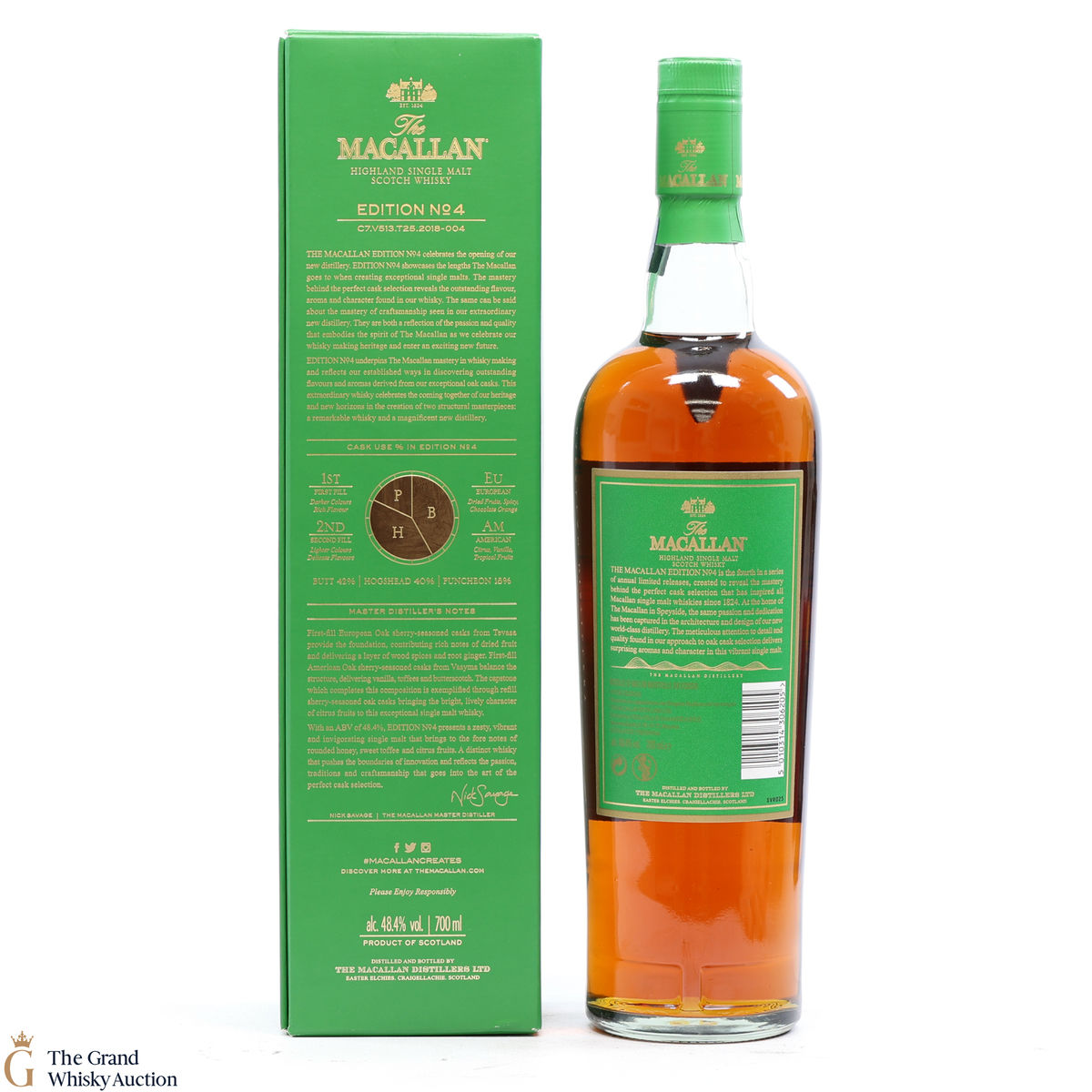 The fourth release in the Edition Series from The Macallan, this Speyside single malt is a celebration of the distillery's whisky making heritage, combining a unique selection of oak cask styles. Edition No.4 reflects the craftsmanship and pioneering design of the new Macallan distillery.