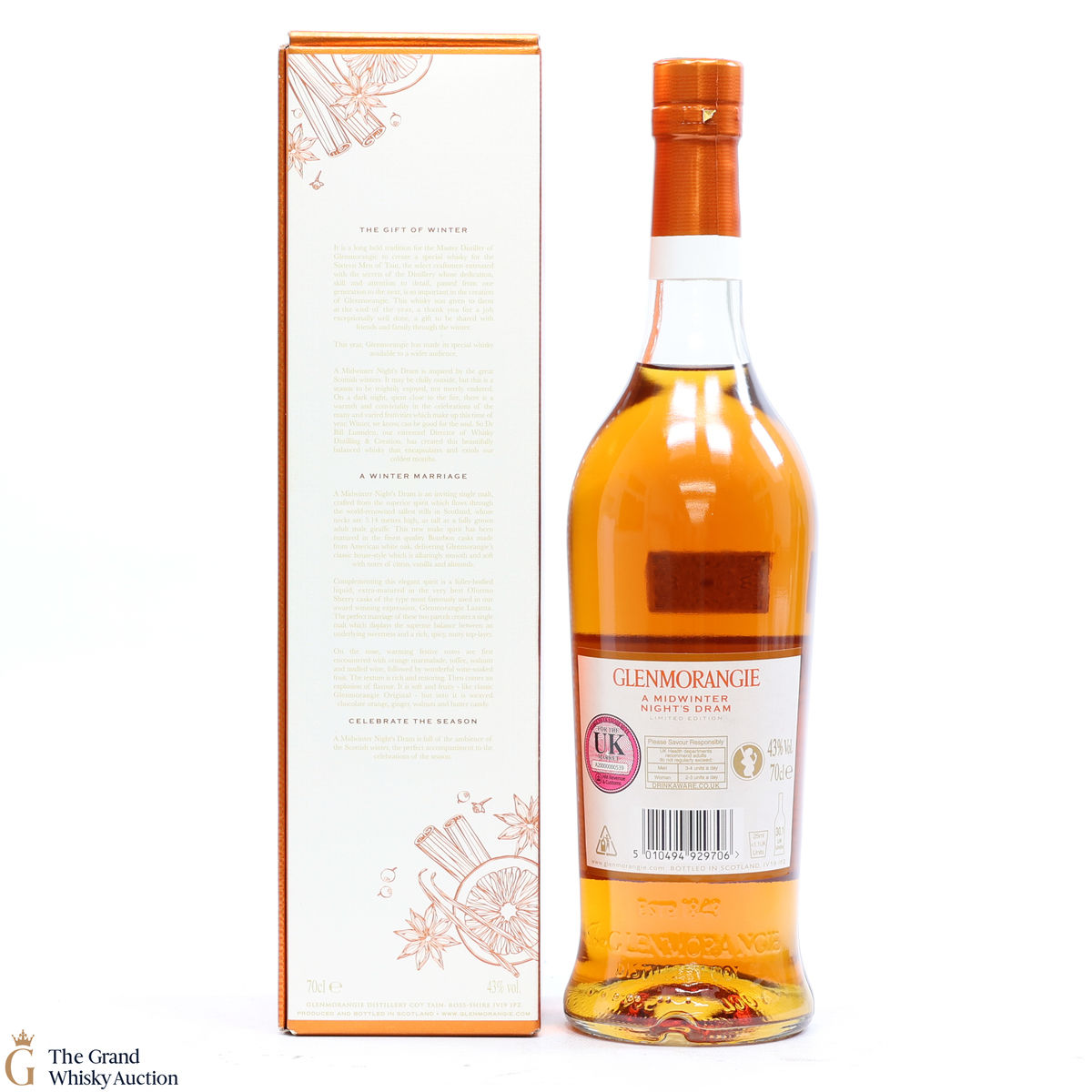 Due to the various ages of bottles and their seals, the condition of liquid is at the buyer's discretion and no claim can be lodged against failure/leakage in transit. Loss and breakage cover is available at 3% of the hammer price as standard. If the lot is not insured, no claim can be lodged against the courier or The Grand Whisky Auction for breakage or loss in transit.