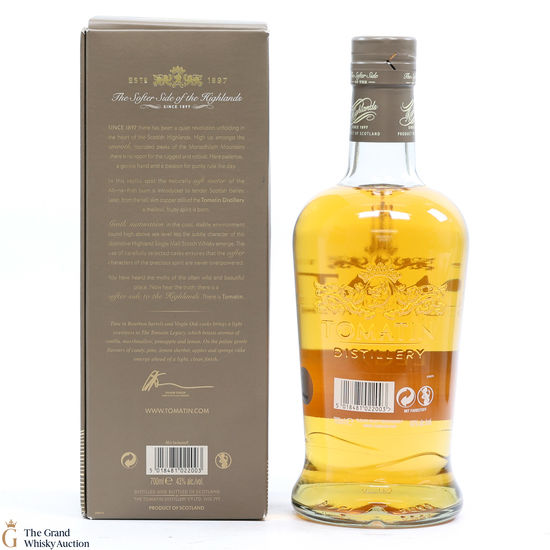 This is a no-age-statement release from Tomatin Distillery. Matured in Bourbon Barrels as well as Virgin Oak Casks before being bottled at an ABV of 43%.