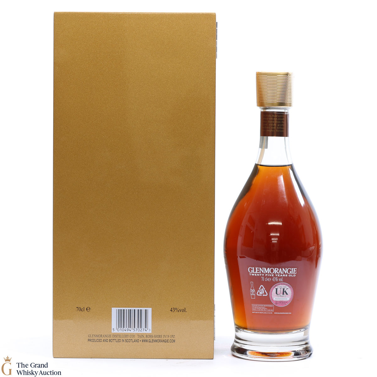 Possibly one of Glenmorangie's most striking presentations of a 25 year old whisky. A golden box to match the liquid within that has been matured in both sherry and Burgundy casks.