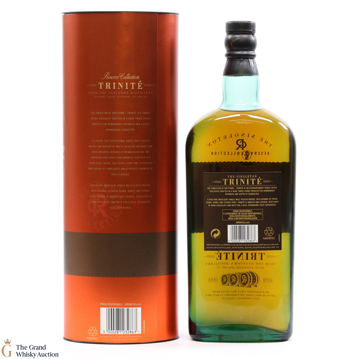 Distilled at Singleton Distillery in Dufftown, the Trinite is a travel retail exclusive crafted in a three-stage process. This single malt was bottled at 40% ABV.
