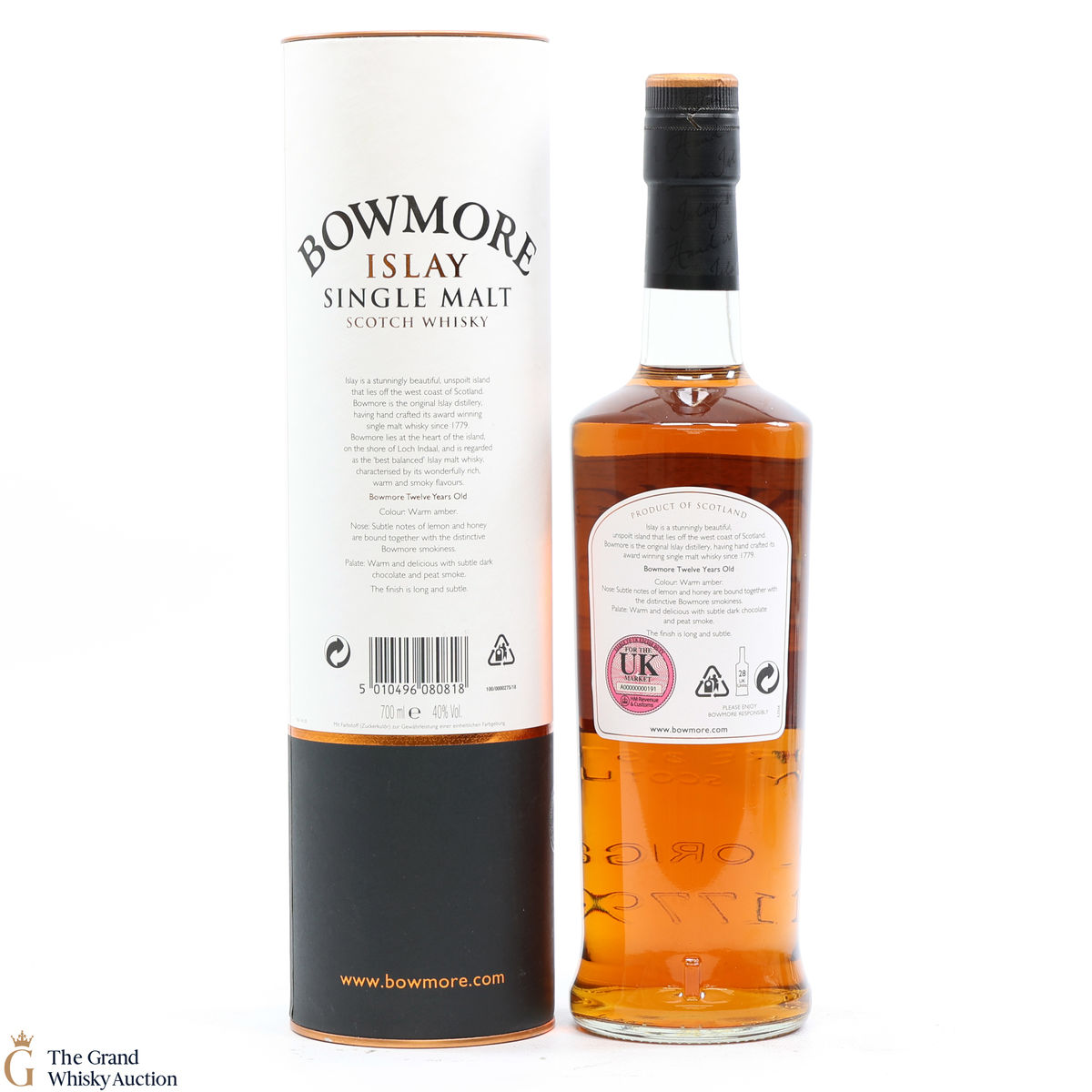 This is a 70cl bottling of 12-Year-Old Bowmore. This single malt has coastal notes with gentle peat. This bottle is Original series which is a newer release.