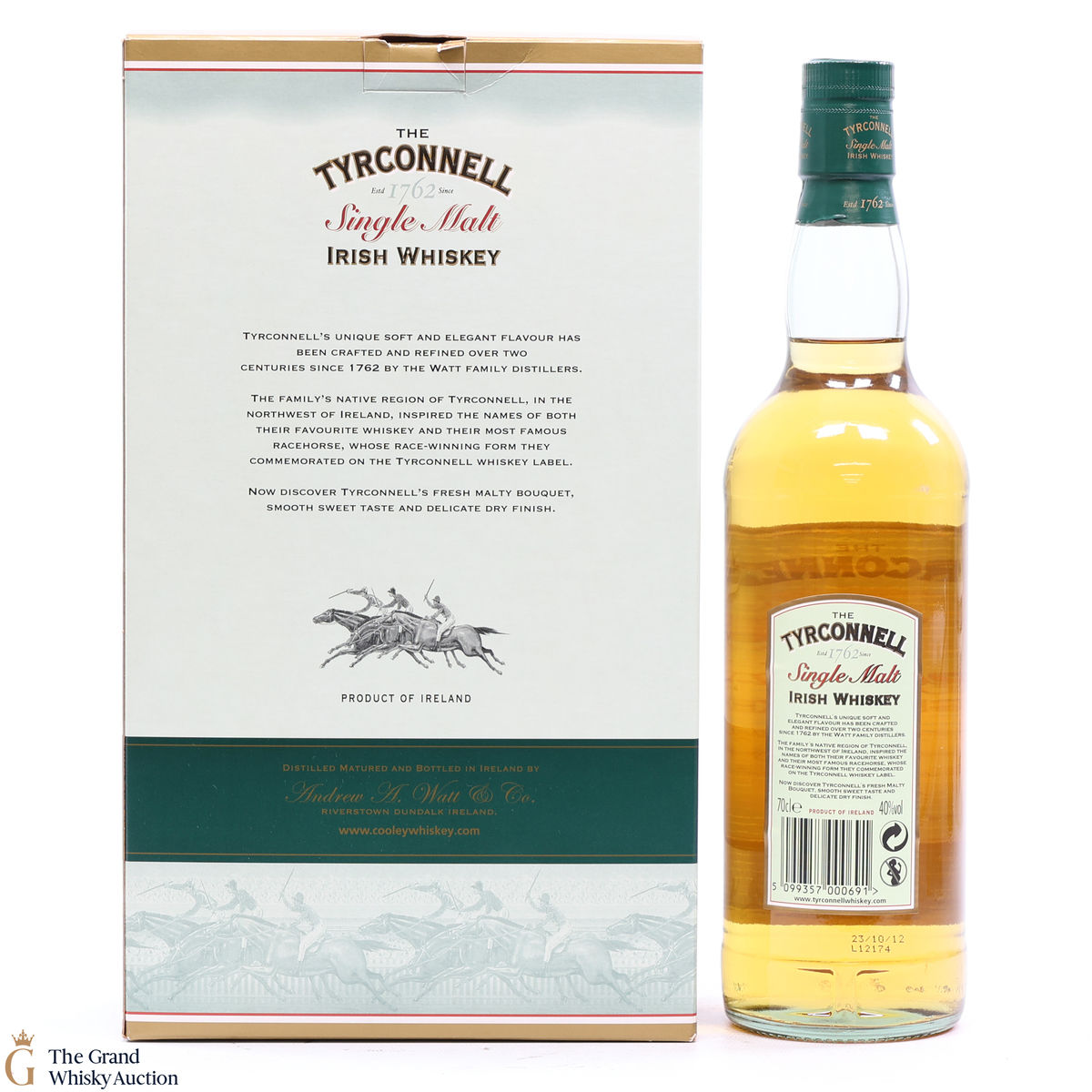 Distilled at Cooley distillery and bottled by the old Tyrconnell distillery brand. This set includes 2 x glasses.