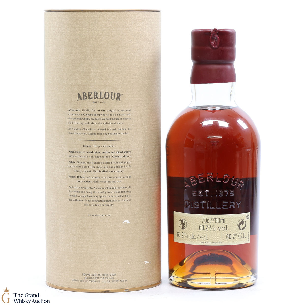Meaning 'of the origin' in Gaelic, A'bunadh is made in homage to Aberlour's founder, James Fleming. This is batch No. 3145 of the popular A'Bunadh single malt. It has been matured in Spanish Oloroso sherry butts and bottled at cask strength at 60.2% creating a dark luxurious whisky.