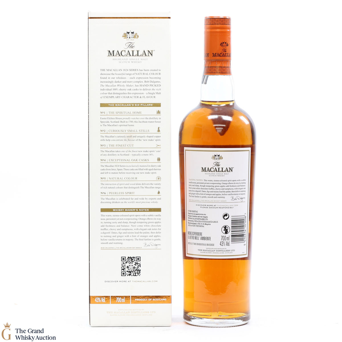The Macallan 1824 Series celebrates natural colour. The most distinctive and defining characteristic of Macallan is the sherry-seasoned oak casks that are used to mature the whisky. This series shows commitment to 100% natural colour, drawn from wood. The colour of each expression becomes deeper as the range progresses.