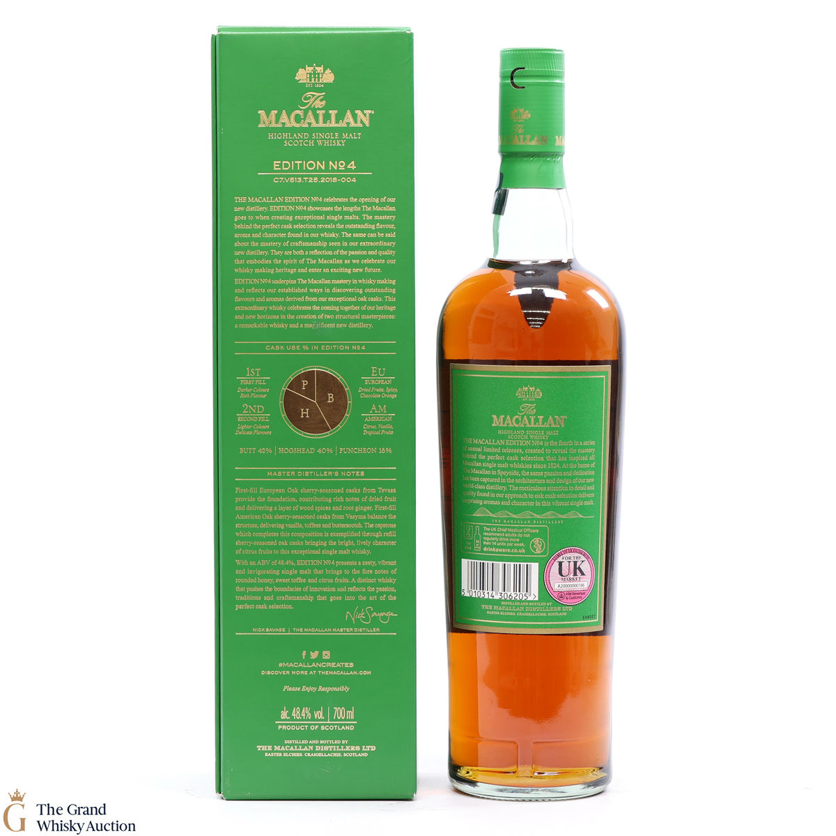 The fourth release in the Edition Series from The Macallan, this Speyside single malt is a celebration of the distillery's whisky making heritage, combining a unique selection of oak cask styles. Edition No.4 reflects the craftsmanship and pioneering design of the new Macallan distillery.