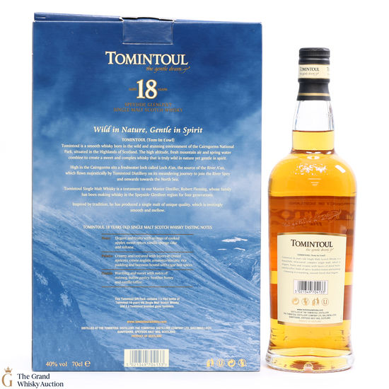 A 18-year-old single malt expression from Tomintoul. It has been matured in oak casks and crafted by the fourth generation distiller, Robert Fleming.