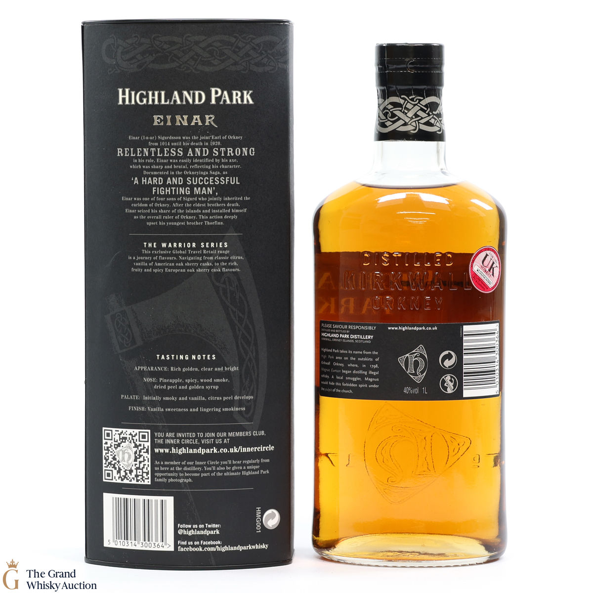 Einar is from Highland Park's travel retail Warrior series. It is named after Einar Sigurdsson who is documented in the Orkneyinga Saga as 'hard and successful man' that once ruled Orkney, where the Highland Park distillery resides. This single malt has been matured in Sherry seasoned American and European oak casks. Warm flavours of zesty dried orange peel and vanilla pods sweetly unfold in each dram of Einar.