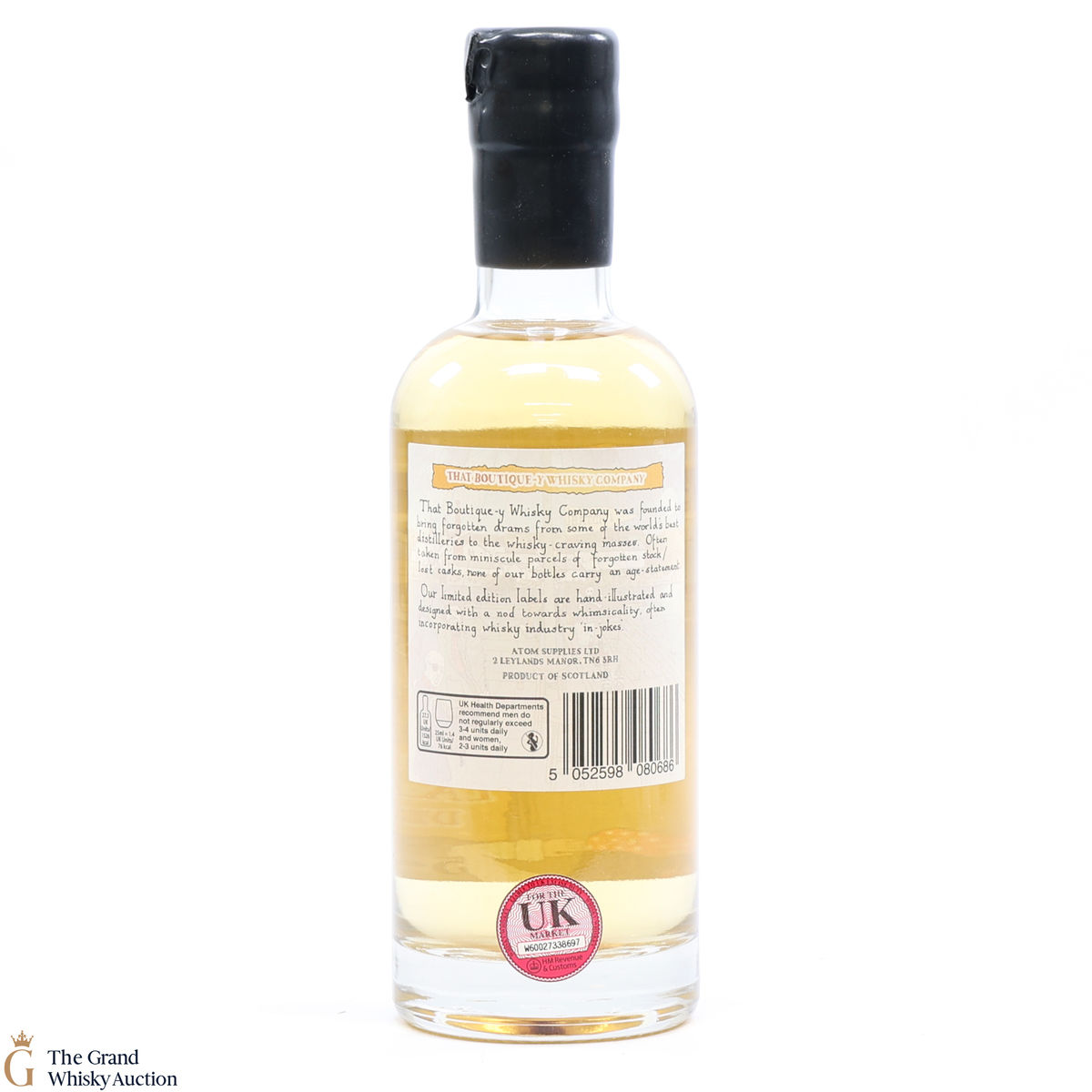 Due to the various ages of bottles and their seals, the condition of liquid is at the buyer's discretion and no claim can be lodged against failure/leakage in transit. Loss and breakage cover is available at 3% of the hammer price as standard. If the lot is not insured, no claim can be lodged against the courier or The Grand Whisky Auction for breakage or loss in transit.