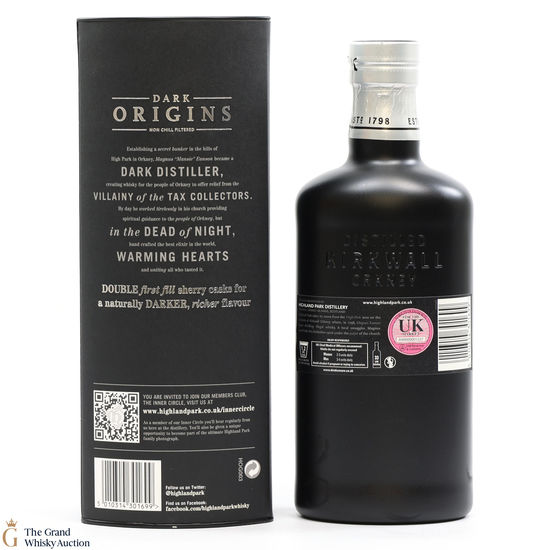 Highland Park Dark Origins is core bottling that celebrates the early days of Magnus Eunson's illicit distilling on Orkney, back before the distillery was even founded in 1798. Magnus worked as a butcher and church official by day, but by night he was a legendary whisky smuggler and distiller outwitting the exciseman.