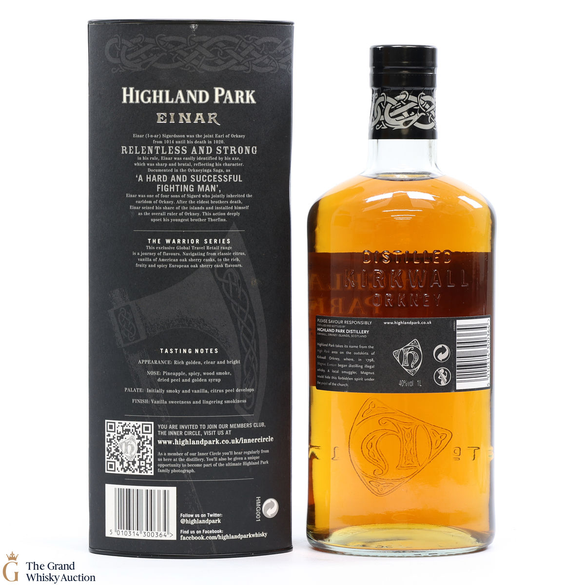 Einar is from Highland Park's travel retail Warrior series. It is named after Einar Sigurdsson who is documented in the Orkneyinga Saga as 'hard and successful man' that once ruled Orkney, where the Highland Park distillery resides. This single malt has been matured in Sherry seasoned American and European oak casks. Warm flavours of zesty dried orange peel and vanilla pods sweetly unfold in each dram of Einar.