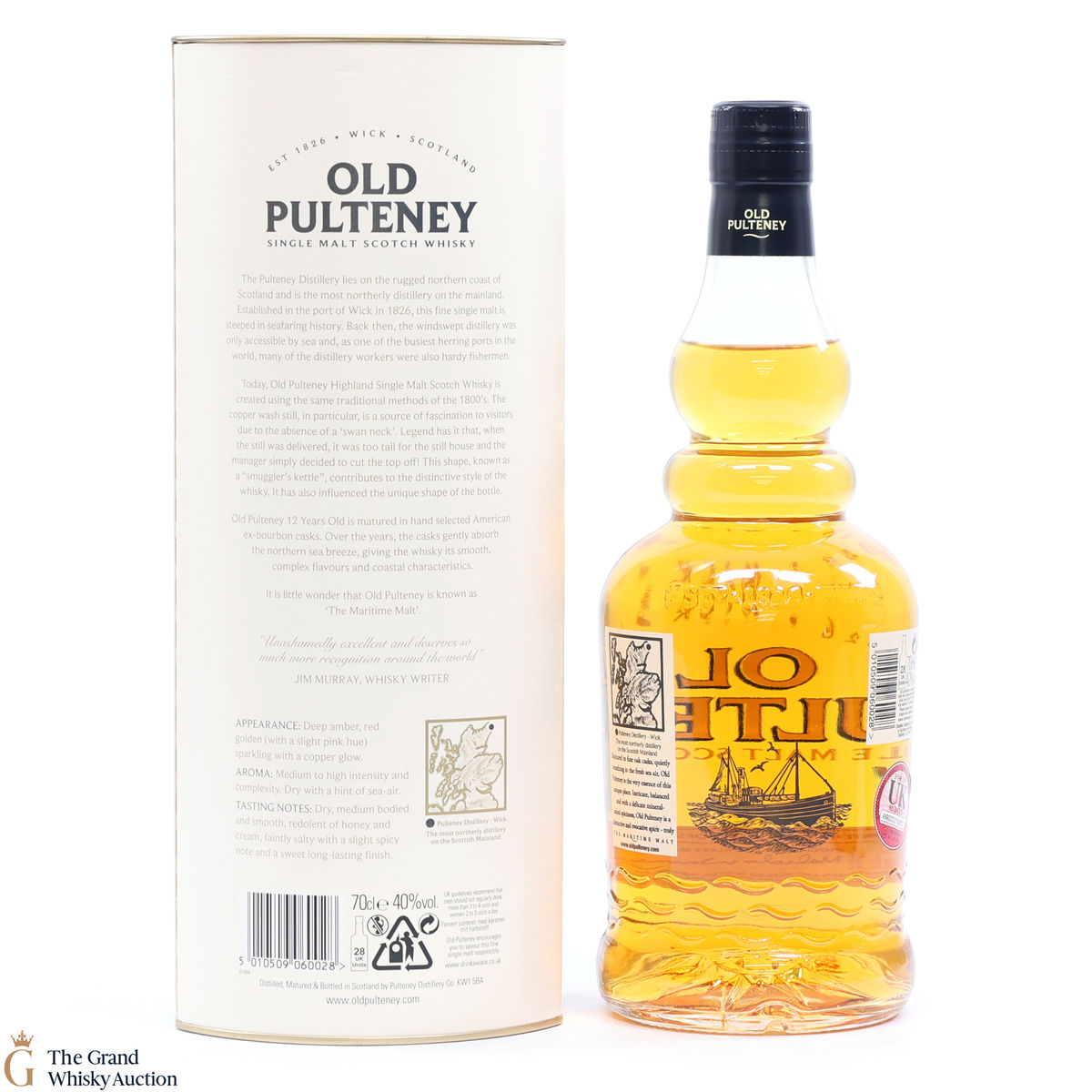 Old Pultney is known as the Maritime Malt due to the distillery location at the very North of Scotland and this is honoured with the unique shape of the bottle.