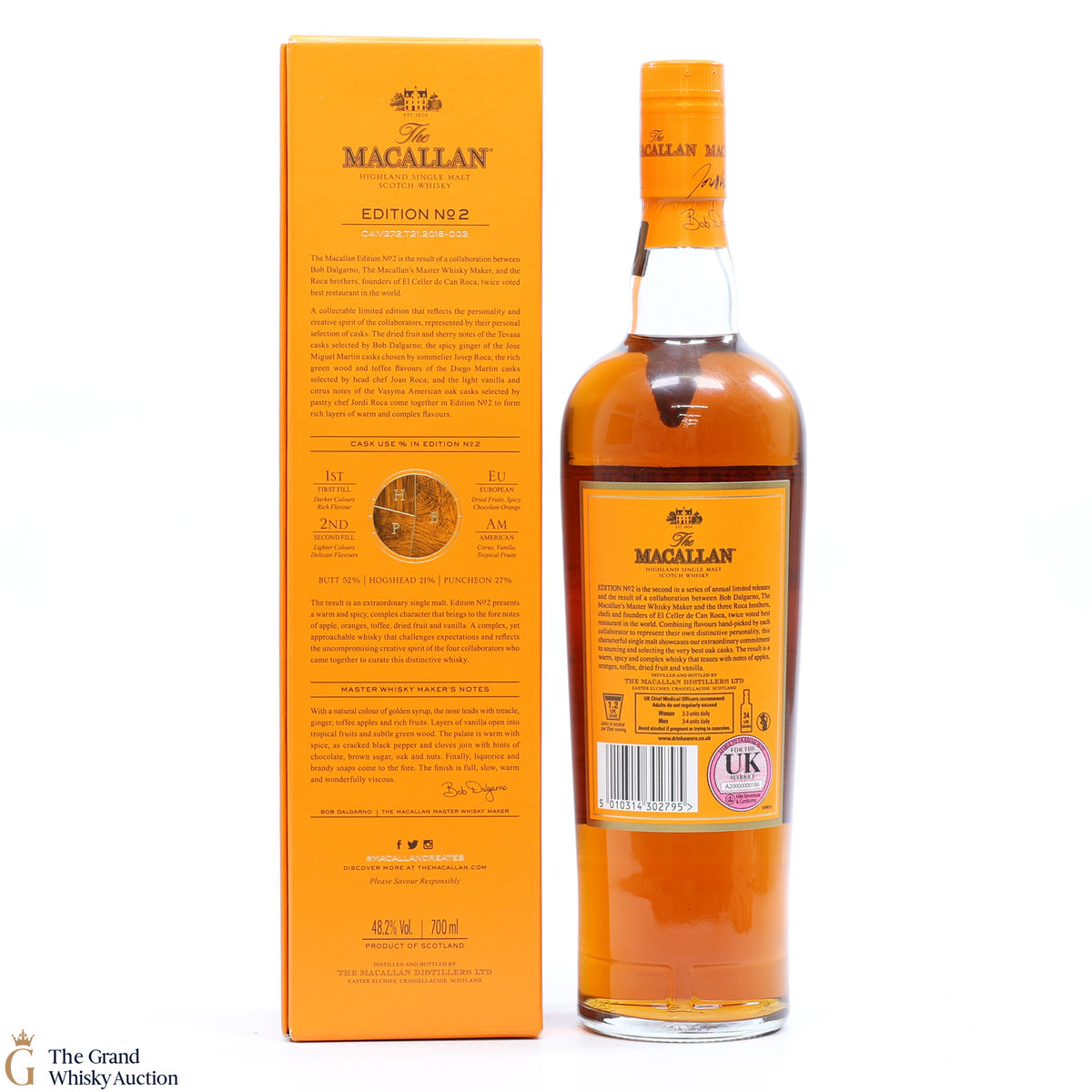This is the second release from the Macallan Edition series. Edition No.2 is a collaboration between Macallan's master blender Bob Delgarno and legendary Spanish chefs Joan, Josep and Jordi Roca. The Rocas are the three brothers behind El Celler de Can Roca (named Best Restaurant in the World twice by Restaurant magazine). This single malt was drawn from a combination of sherry puncheons, butts and refill hogsheads.