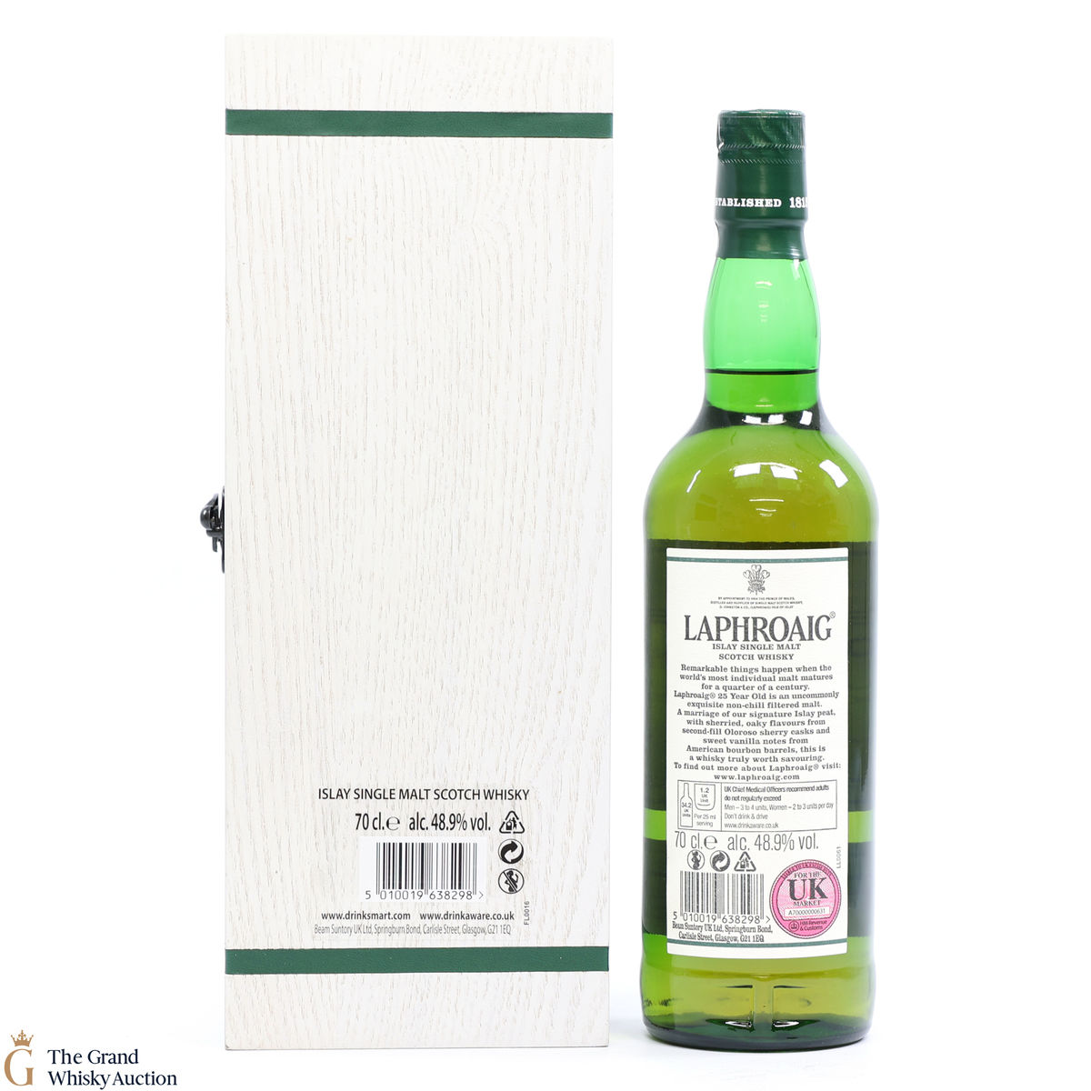 Laphroaig 25 Year Old Cask Strength 2017 Edition is an unlikely combination of whisky that has been aged in second-fill European oak Oloroso sherry casks and American white oak bourbon.