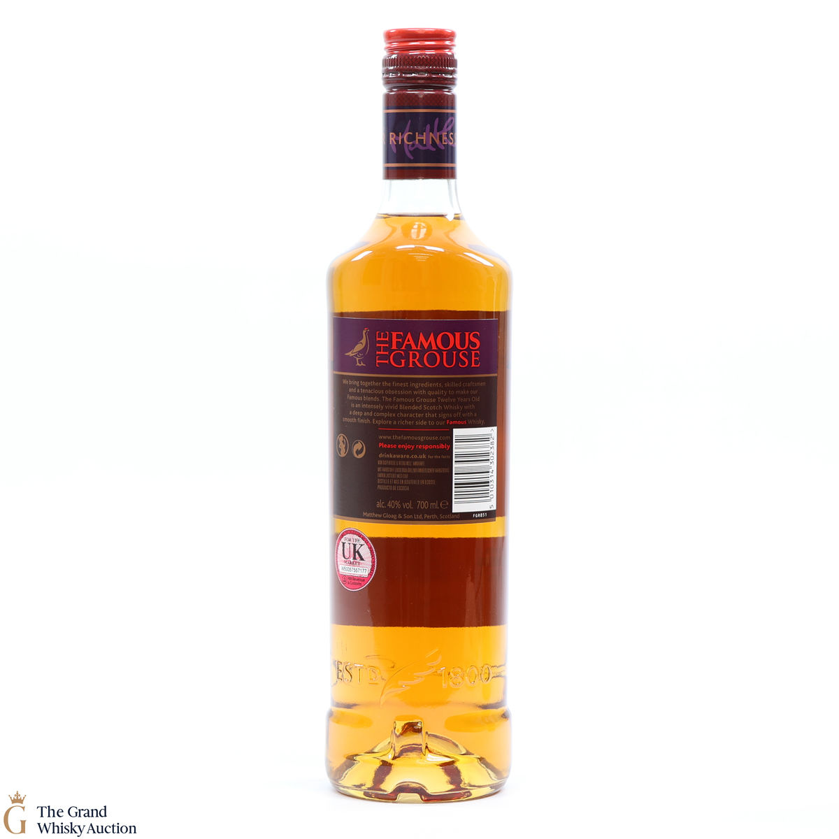Famous Grouse 12 Year Old has now been discontinued. It was released to celebrate a centenary of the Famous Grouse brand. It is said to be of premium quality with a good proportion of malt whiskies (including Macallan and Highland Park) in the blend.