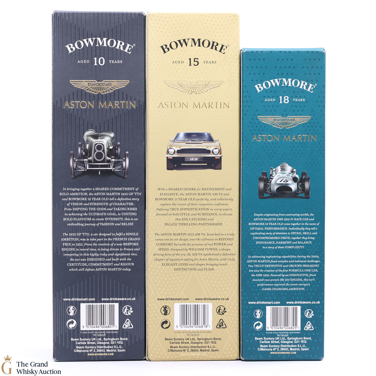 This lot includes 3 x Travel retail exclusive bottles; Edition 4, 5 & 6 from the limited BOWMORE X ASTON MARTIN collection; 2 x 1L bottles and 1 x 70cl.
