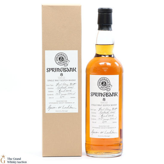 Selected by distillery manager Gavin Mclachlan, this 8 year old single malt is from Springbank in Campbeltown. It matured in a fresh sherry butt for 8 years and only 594 bottles were available. Bottled in 2016 at cask strength 57.2%.