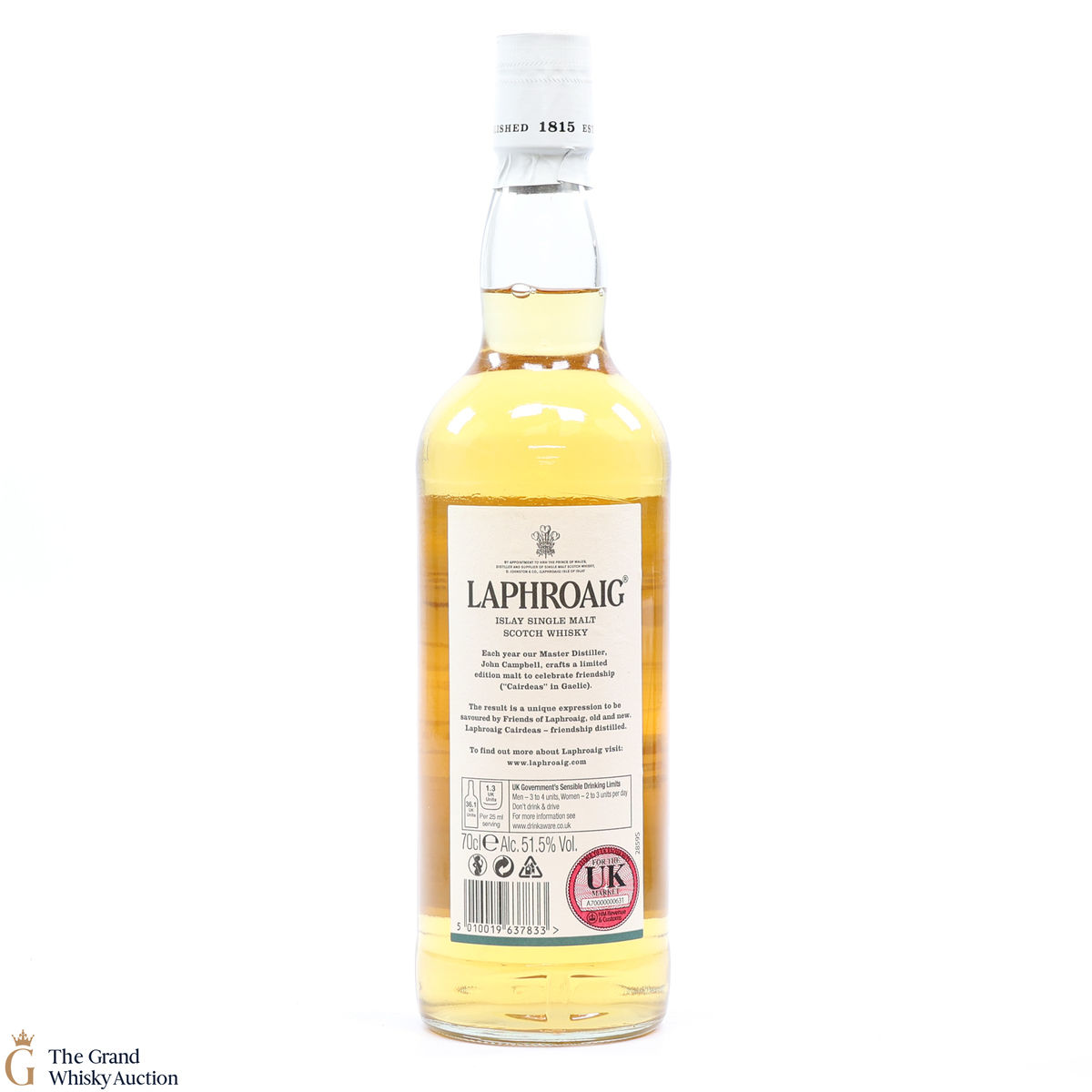Cairdeas, Gaelic for 'friendship', is an annual bottle release by Laphroaig for their Friends of Laphroaig members. Today, it is the biggest selling single malt from Islay, and one of the last distilleries using its own floor maltings.