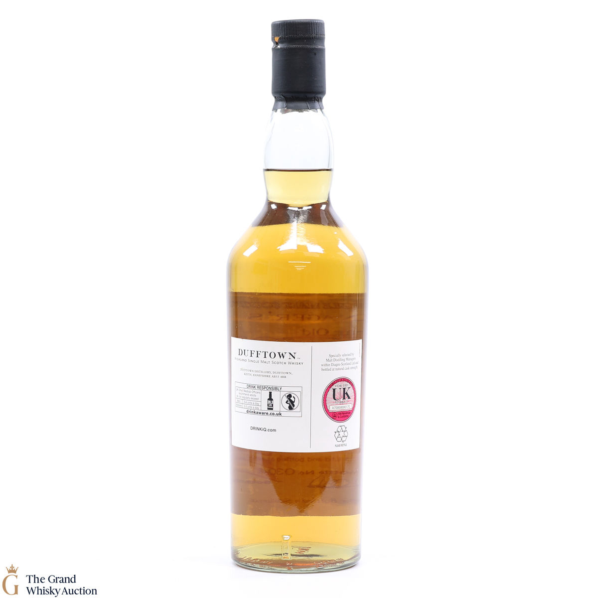 Due to the various ages of bottles and their seals, the condition of liquid is at the buyer's discretion and no claim can be lodged against failure/leakage in transit. Loss and breakage cover is available at 3% of the hammer price as standard. If the lot is not insured, no claim can be lodged against the courier or The Grand Whisky Auction for breakage or loss in transit.